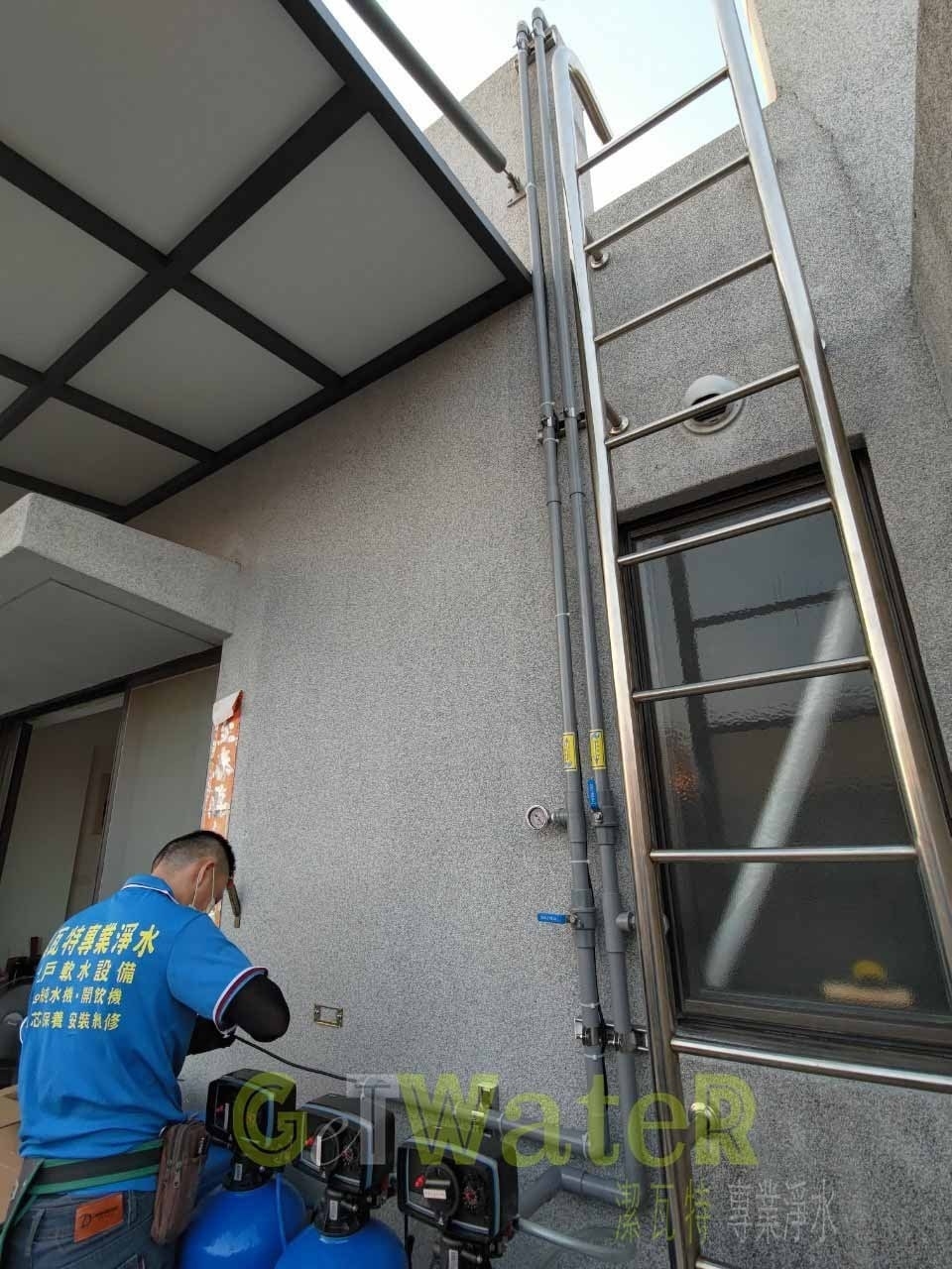 本次安裝的業主一開始只想在一樓跟頂樓裝設20吋大胖過濾器,最後跟業主討論後才了解原來最想處理的還是水垢問題,經過跟業主詳細說明軟水設備的好處後,業主也跟家人討論完後放棄原本想裝的大胖過濾器,改安裝全自動軟水設備相信這樣的選擇才是對的,不止可以保護太陽能加熱器,更可以保護家人不用被氯危害洗澡完皮膚更滑潤,另外加購直出機讓家人喝水更安全。