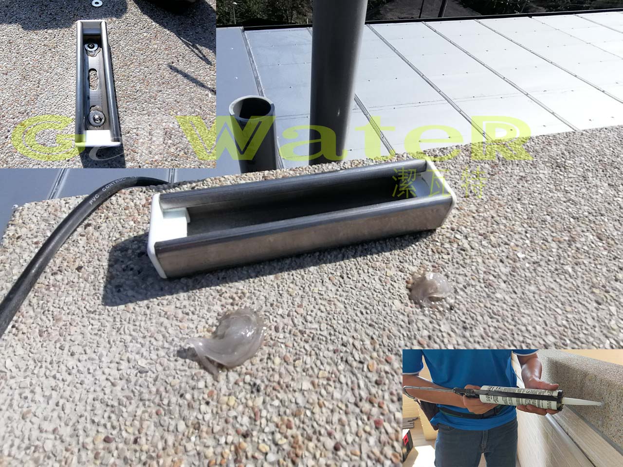 電源插座採用戶外型,四邊加上矽利康防止漏水漏電跟電壓確認